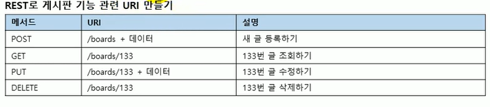 cf)REST 방식으로 요청하는 URI 형식 : /작업명/기본키+메서드+데이터